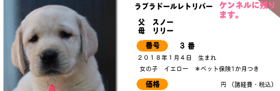 ・約1か月分のドッグフード(3キロ×2個)付きでお渡しいたします。